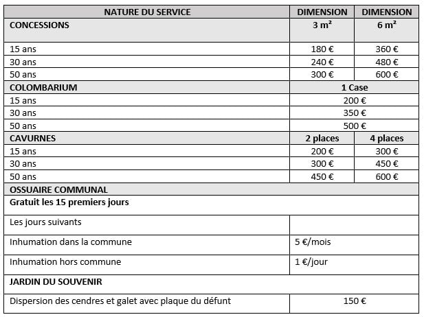 Vu la délibération du Conseil Municipal fixant les tarifs dans le cimetière à compter du 1er octobre 2024