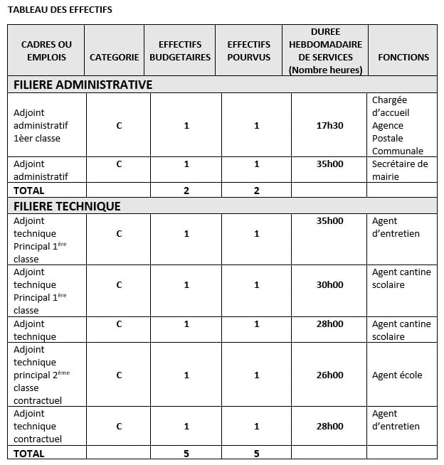 Il appartient donc au Conseil Municipal de fixer l’effectif des emplois nécessaires au fonctionnement des services.