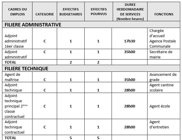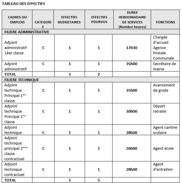 1. FERMETURE ET SUPPRESSION DE POSTES ET MISE A JOUR DU TABLEAU D’EFFECTIF