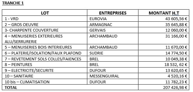 Ils convient donc de créer une 2ème tranche de travaux et de consulter des entreprises. L’architecte a évalué un montant des travaux autour de 80 000€.