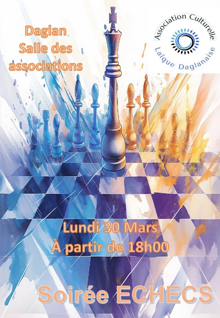 Lundi 20 Mars 2026 Soirée Échecs à partir de 18h00 à la salle des associations